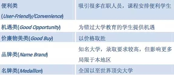 案例——赞姆斯基市场分类法,将高等教育机构分为以下五类: